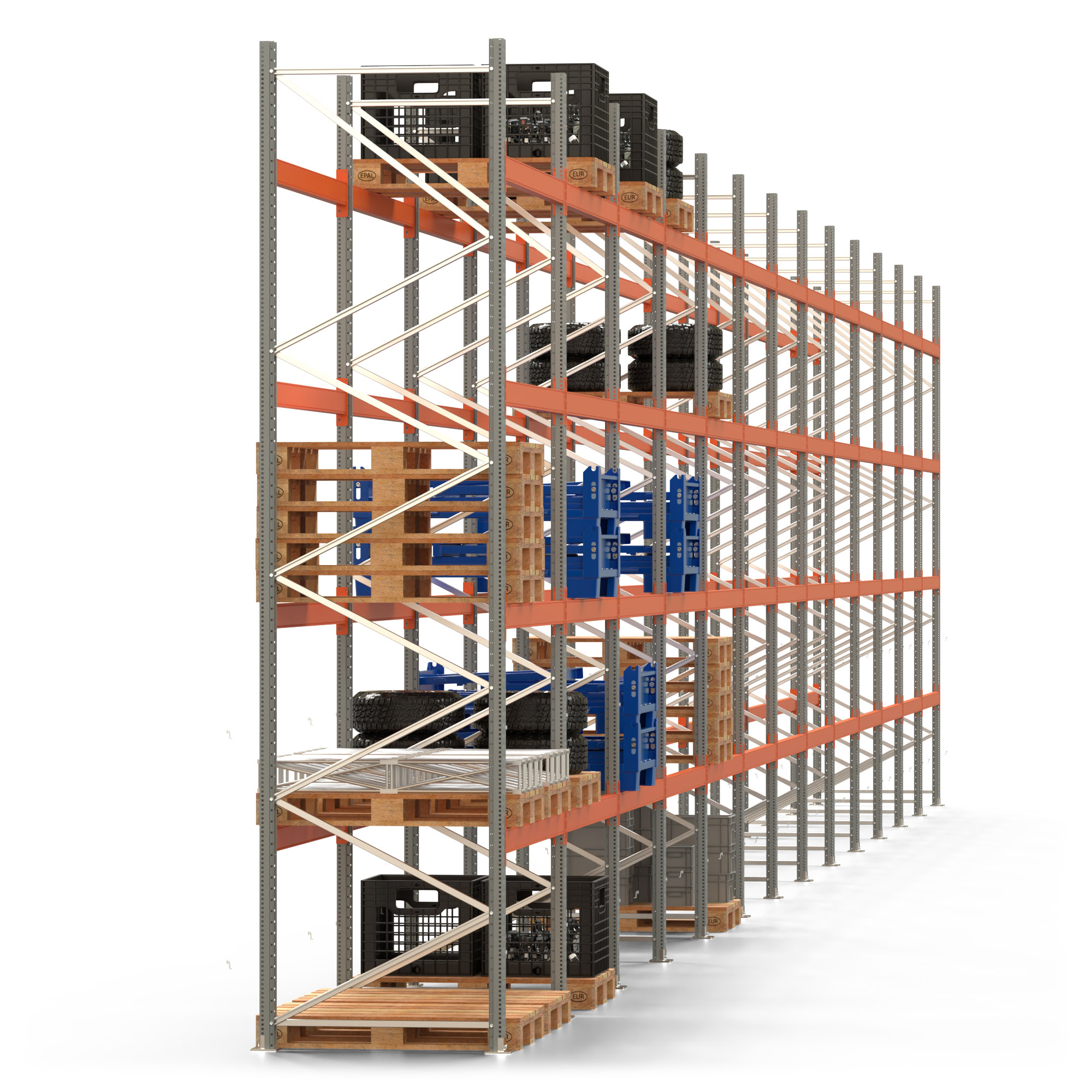 Palettenregal ARTUS - Breite 2589 cm - Höhe 450 cm - Tiefe 110 cm - Fachlast 2000 kg - 130 Palettenstellplätze