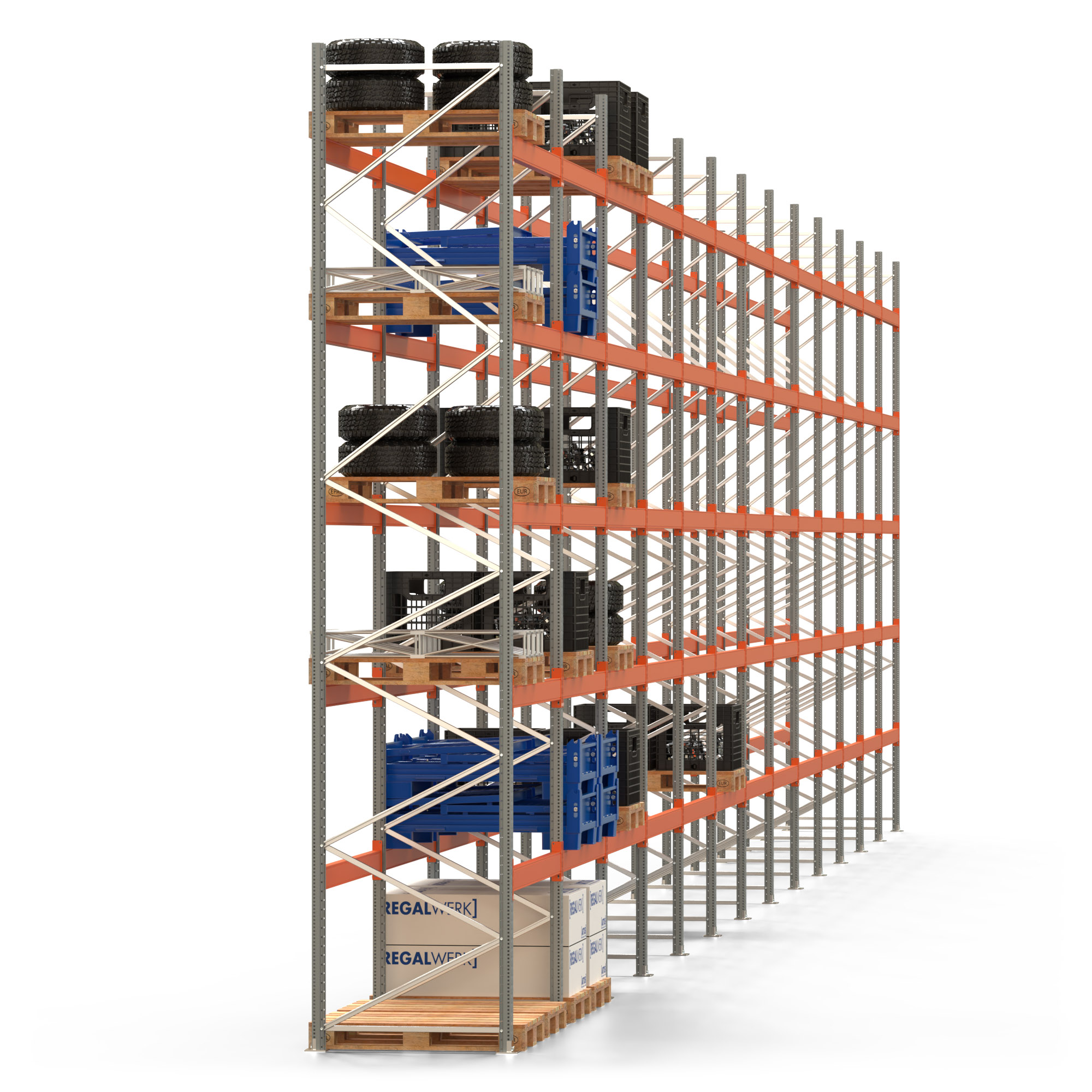 Palettenregal ARTUS - Breite 2589 cm - Höhe 550 cm - Tiefe 110 cm - Fachlast 2000 kg - 78 Palettenstellplätze