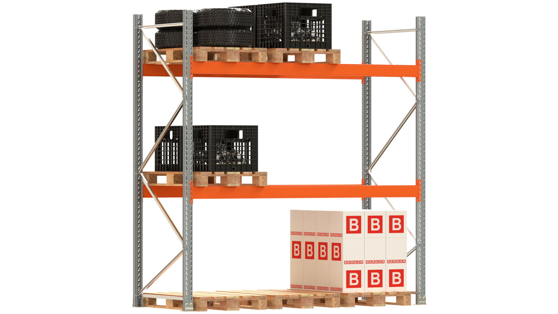 Palettenregal ARTUS - Breite 287 cm - Höhe 300 cm - Tiefe 110 cm - 2 Träger-Ebenen - Fachlast 3000 kg - 9 Palettenstellplätze