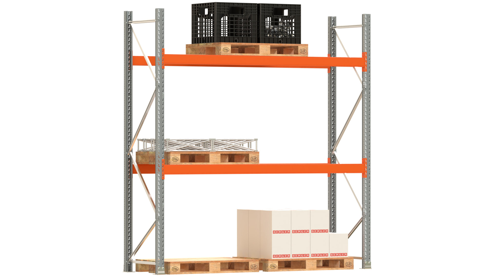 Palettenregal ARTUS - Breite 287 cm - Höhe 300 cm - Tiefe 80 cm - 2 Träger-Ebenen - Fachlast 2000 kg - 6 Palettenstellplätze