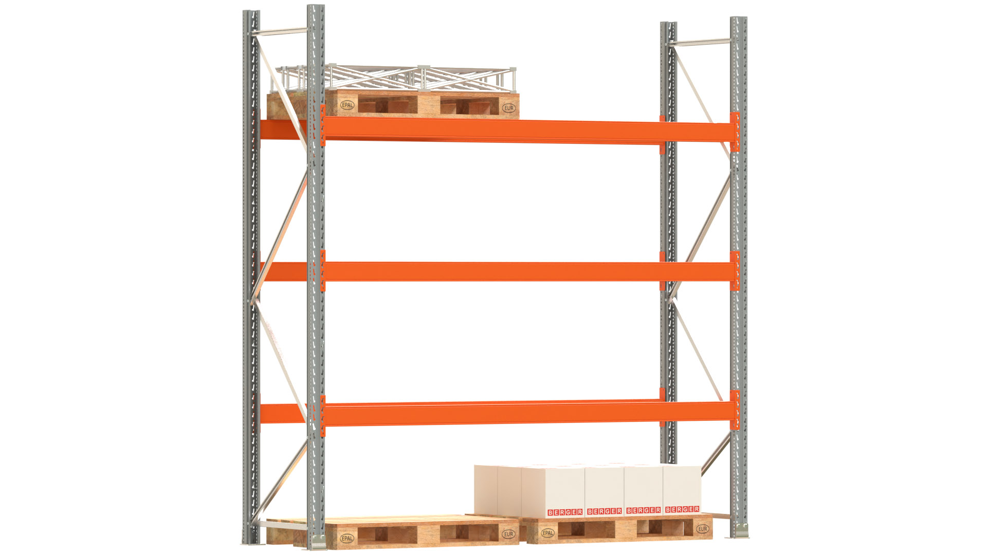 Palettenregal ARTUS - Breite 287 cm - Höhe 300 cm - Tiefe 80 cm - 3 Träger-Ebenen - Fachlast 2000 kg - 8 Palettenstellplätze
