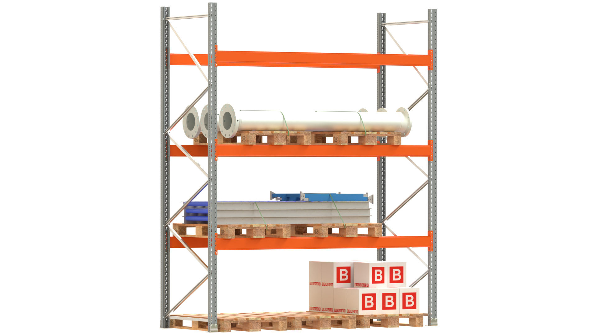 Palettenregal ARTUS - Breite 287 cm - Höhe 350 cm - Tiefe 110 cm - 3 Träger-Ebenen - Fachlast 3000 kg - 12 Palettenstellplätze