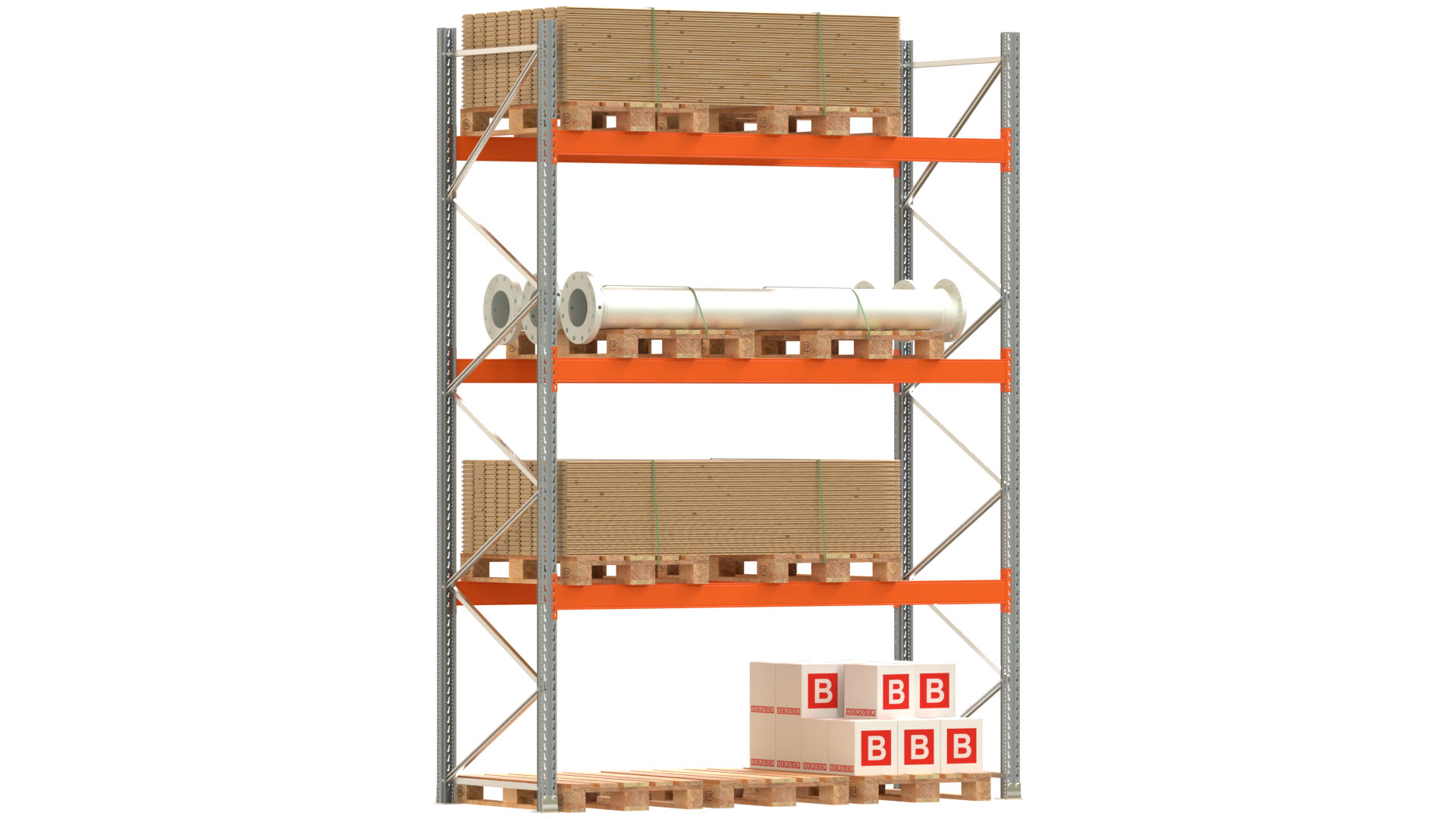 Palettenregal ARTUS - Breite 287 cm - Höhe 400 cm - Tiefe 110 cm - 3 Träger-Ebenen - Fachlast 3000 kg - 12 Palettenstellplätze