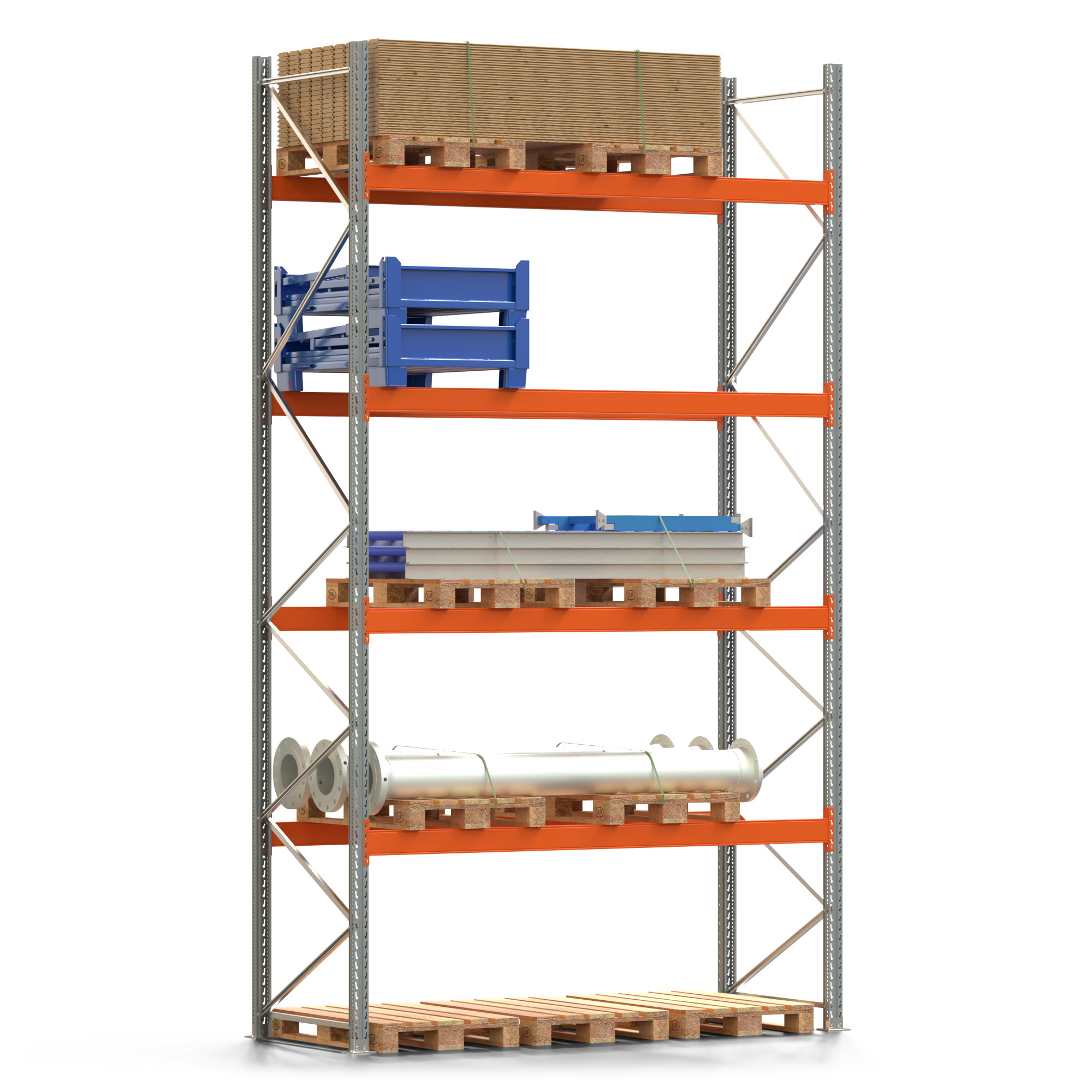 Palettenregal ARTUS - Breite 287 cm - Höhe 500 cm - Tiefe 110 cm - 4 Träger-Ebenen - Fachlast 2250 kg - 15 Palettenstellplätze