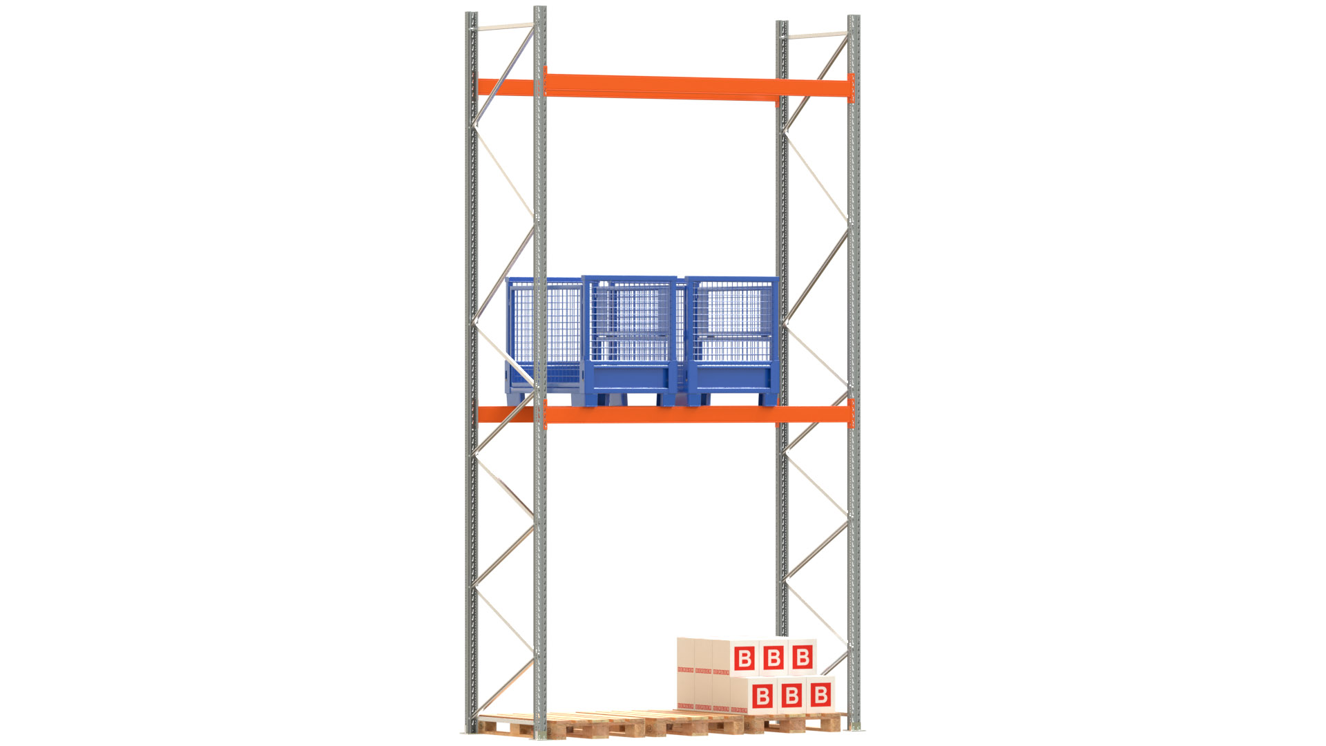 Palettenregal ARTUS - Breite 287 cm - Höhe 550 cm - Tiefe 110 cm - 2 Träger-Ebenen - Fachlast 3000 kg - 9 Palettenstellplätze