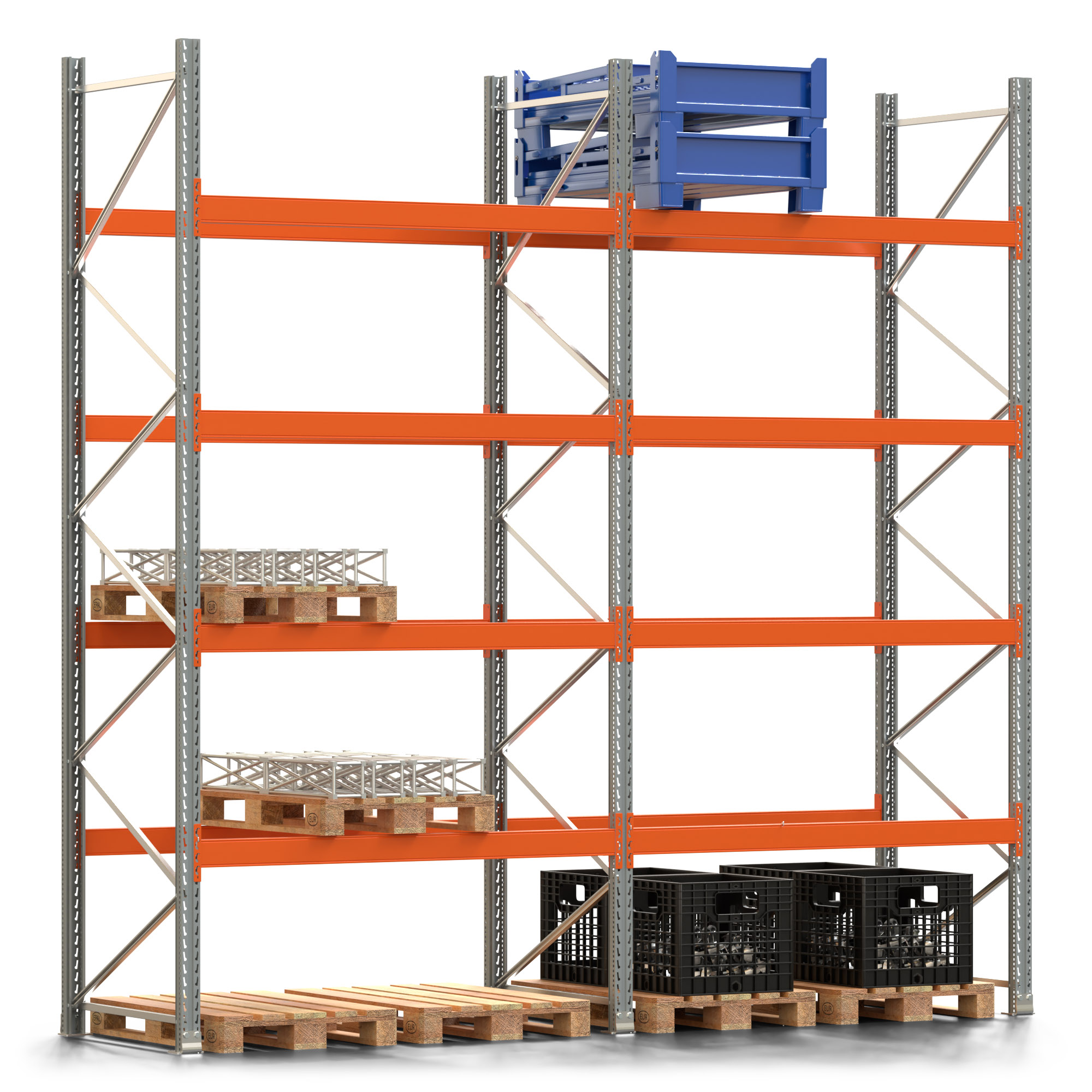 Palettenregal ARTUS - Breite 405,5 cm - Höhe 400 cm - Tiefe 110 cm - 4 Träger-Ebenen - Fachlast 2000 kg - 20 Palettenstellplätze