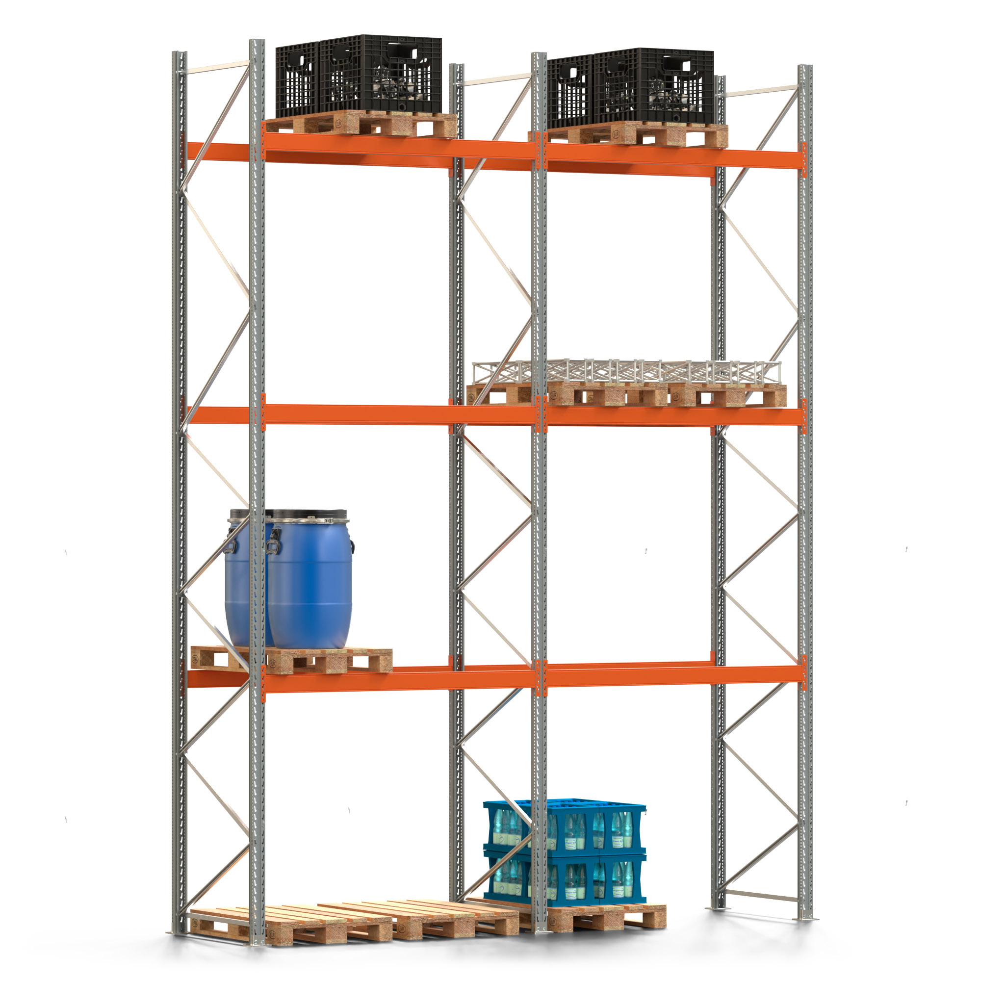 Palettenregal ARTUS - Breite 405,5 cm - Höhe 550 cm - Tiefe 110 cm - 3 Träger-Ebenen - Fachlast 2000 kg - 16 Palettenstellplätze