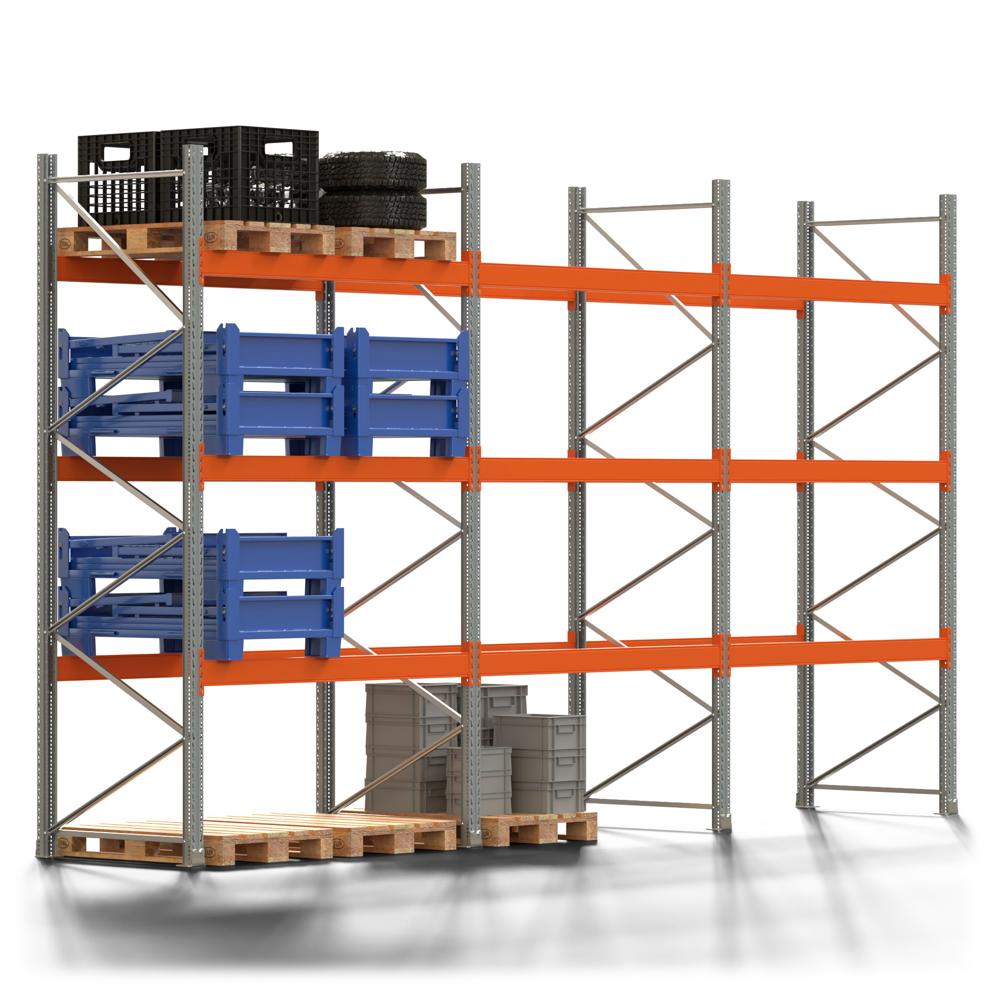 Palettenregal ARTUS - Breite 604 cm - Höhe 350 cm - Tiefe 110 cm - 3 Träger-Ebenen - Fachlast 3000 kg - 24 Palettenstellplätze