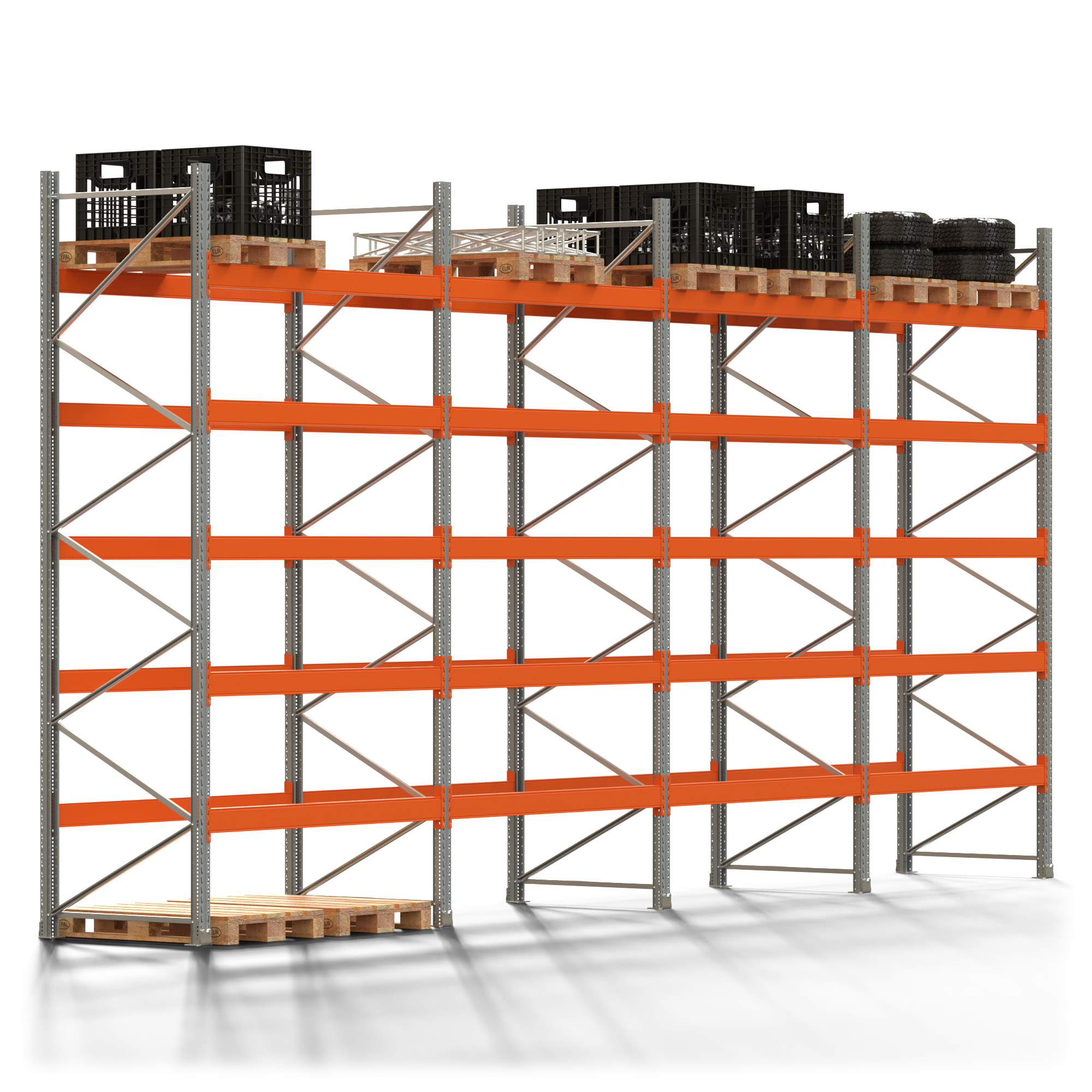 Palettenregal ARTUS - Breite 802,5 cm - Höhe 400 cm - Tiefe 110 cm - Fachlast 2000 kg - 24 Palettenstellplätze