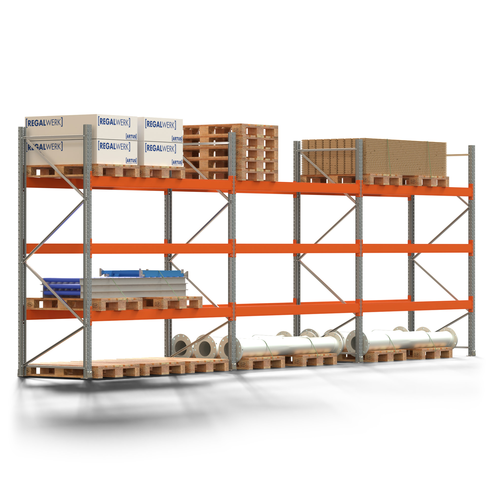 Palettenregal ARTUS - Breite 844 cm - Höhe 300 cm - Tiefe 110 cm - 3 Träger-Ebenen - Fachlast 3000 kg - 36 Palettenstellplätze