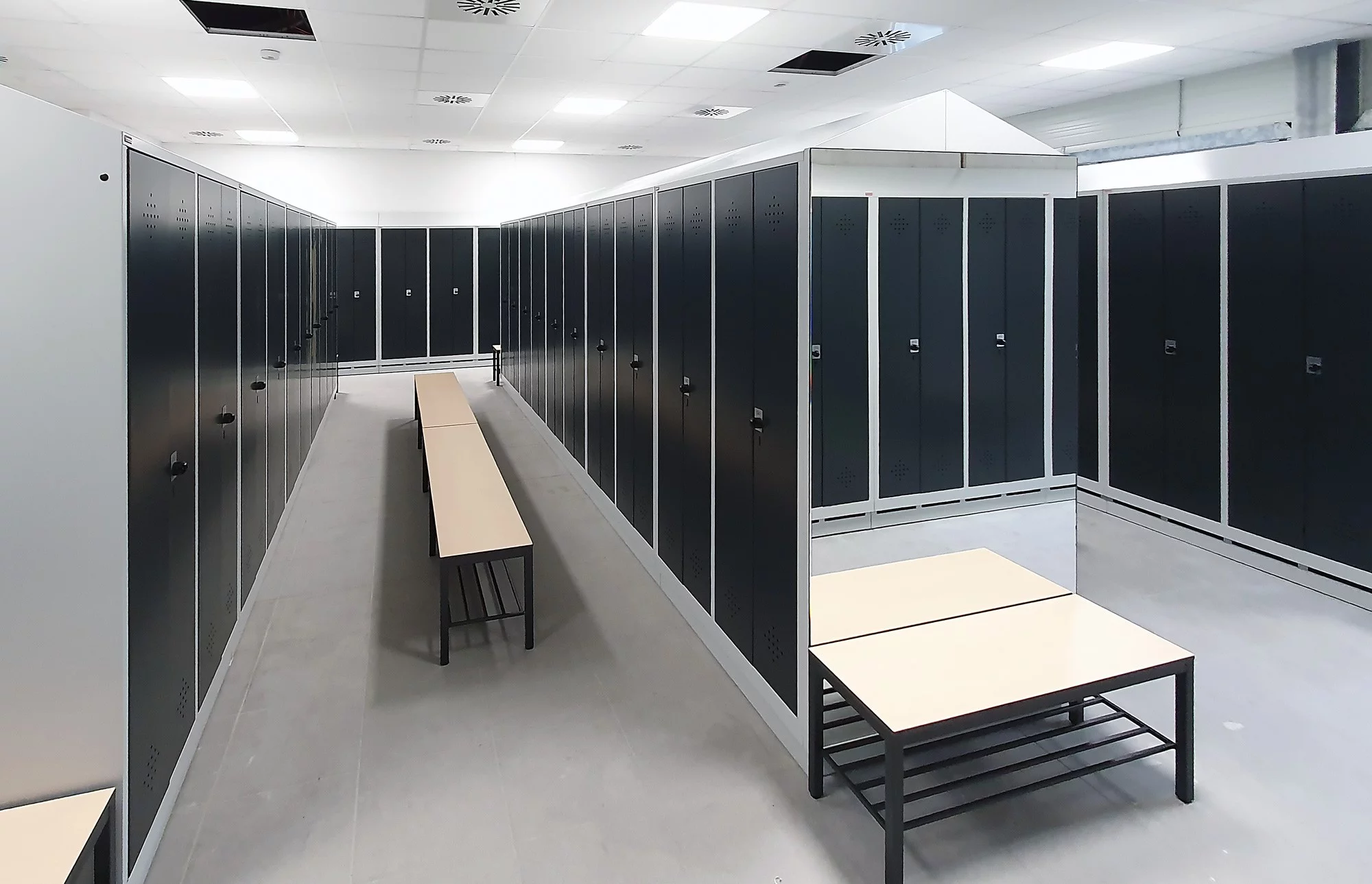 - Platzersparnis: Doppelstöckige Spinde nutzen den begrenzten Raum effizient aus, indem sie zwei separate Abteile übereinander anordnen. Dies ermöglicht es, die verfügbare Fläche optimal zu nutzen, ohne zusätzlichen Platz zu beanspruchen.