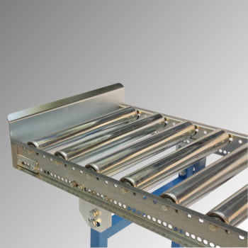 Um die Rollenbahn perfekt an Ihre Bedürfnisse und Arbeitsabläufe anzupassen, können wir Ihnen umfangreiches Zubehör anbieten. Dazu zählen unter anderem Seitenführungen, Sperren, Verteilstationen und Endanschläge, mit denen Sie das Transportgut sicher in der Bahn halten. Passende Ständer, Kurven und Durchgänge haben wir selbstverständlich ebenfalls im Angebot. Andere Transportstrecken wie Röllchenbahnen oder Förderbänder können wir Ihnen ebenfalls anbieten. Sollten Sie bei uns im Shop nicht fündig werden, oder benötigen Sie angepasste Lösungen für Ihre speziellen Anforderungen, lohnt sich für Sie sicherlich ein Anruf.