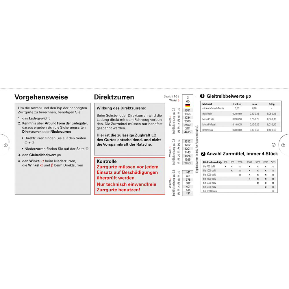 · Für die genaue Berechnung der benötigten Zurrmittel beim Niederzurren und Schräg-/Diagonalzurren · Ihr unverzichtbarer Begleiter für die sichere Ladung