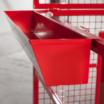 Hier wird Ihnen eine Arbeits- und Montagebühne aus deutscher Fertigung angeboten. Mit dieser Arbeitsbühne können Sie bei Reparaturen und Wartungsarbeiten an hochgelegenen Gebäudeteilen, Krananlagen, Deckenbeleuchtungen, Installationen, etc. sicher arbeiten. Diese Ausführung der Montagebühne wird an der Schmalseite aufgenommen, daher ist auch der Einsatz an einem Schubmaststapler möglich. Eine zusätzliche Leiste am Einstieg verhindert das versehentliche Durchschieben der Staplerzinken und schützt so vor einer Stolpergefahr beim Betreten oder Verlassen des Arbeitskorbes. Werkzeuge und Arbeitsmaterialien lagern Sie griffbereit in der praktischen Werkzeugablage. Der rutschsichere Boden und das stabile Rückgitter ermöglichen Ihnen auch in großen Höhen ein komfortables und sicheres Arbeiten.