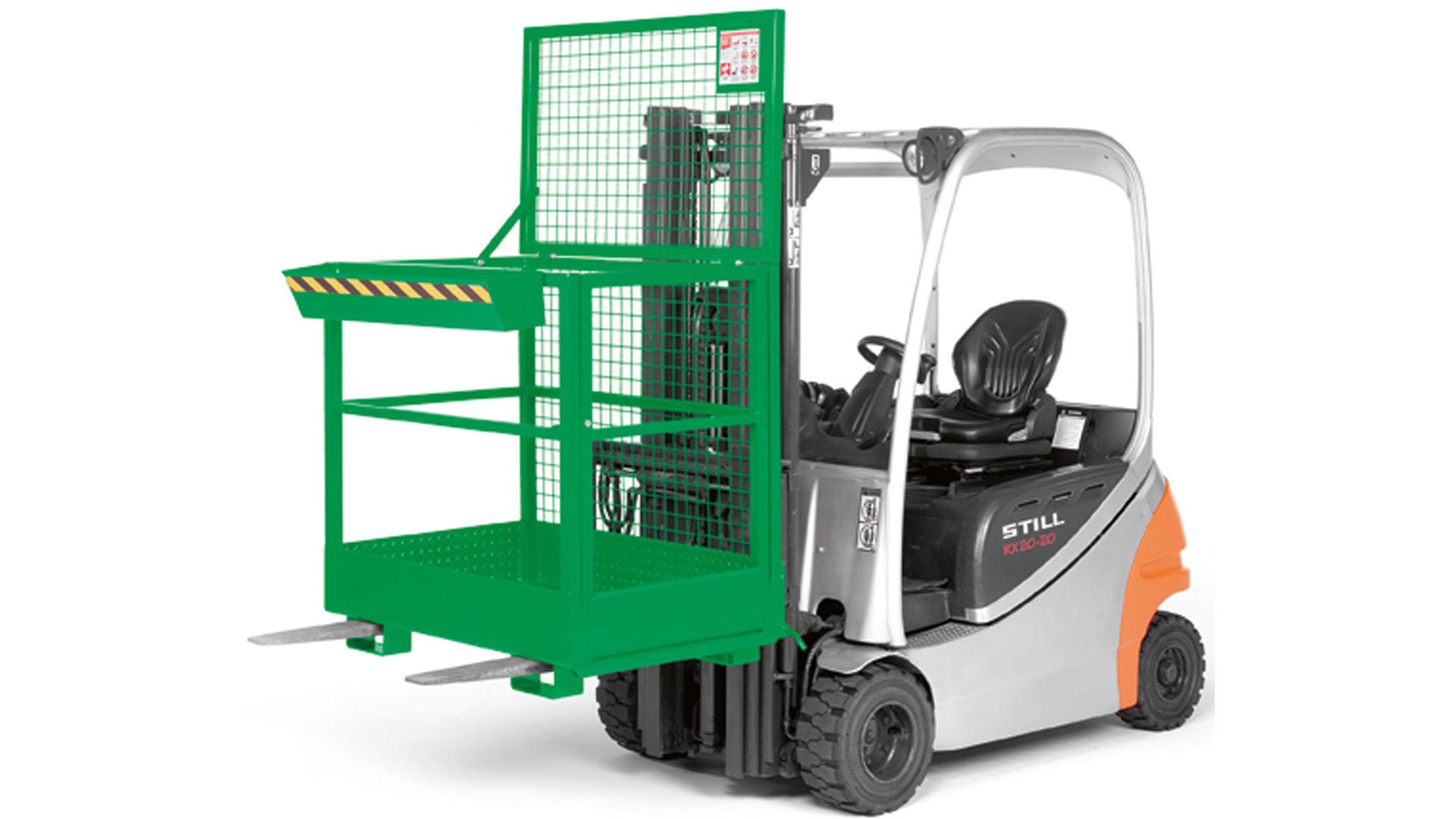 · TÜV geprüfte Sicherheit, entsprechend der DGUV (Deutsche gesetzliche Unfallversicherung) · Stabile Stahlkonstruktion mit rundum Absturzsicherung aus Rohr gemäß UVV · Arbeitskörbe mit TÜV-Zulassung für 2 Personen · Arbeitsplattform aus rutschsicherer Tränenblechkonstruktion mit Abrollschutz · Steckbolzensicherung verhindert das Abrutschen von den Gabelzinken · Pulverbeschichtet · Verzinkte Ausführung auf Anfrage lieferbar