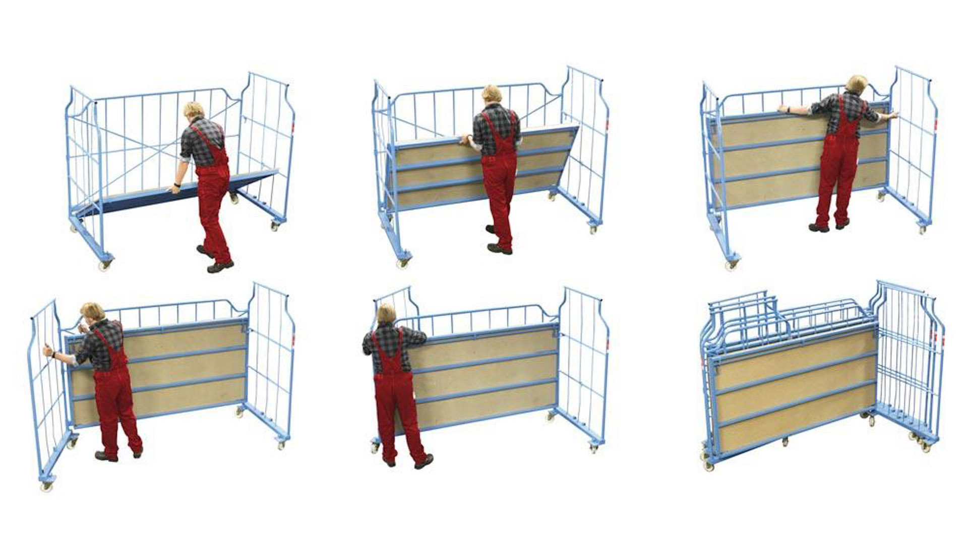 Das Transport- und Lagermittel für das optimale Lager. Sie schaffen Platz dort, wo er am meisten gebraucht wird, im Lager. Zusammengeklappt sind sie ganz klein, aufgeklappt wahre Meister der Raumnutzung. Ausführungen für spezielle Branchen (Möbel, Textil o.ä.) oder Ausführungen mit Gitterwänden usw. stehen auf Anfrage zur Verfügung.