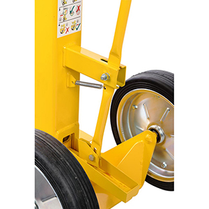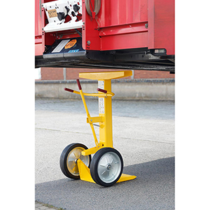 · Massive Stahlkonstruktion · Für Auflieger von bis zu 40 t Gesamtgewicht · Große Bodenplatte 470 x 425 mm · Extra großer Querholm 760 x 120 mm · Höhenverstellbar von 1020-1340 mm · Selbstjustierende Gasdruckfeder · Ergonomisch geformte Griffe für eine einfache Handhabung · Vollgummibereifung Ø 380 mm · Gewicht 70 kg