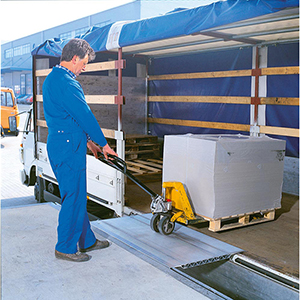 Produktinformationen "Ortsfeste Überfahrbrücke, BxTxH 785x1500x150 mm, Traglast 4000 kg, verschiebbar, klappbar, Fallsicherung"