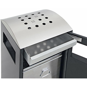 Produktinformationen "Kombi-Ascher, Edelstahl Kopfelement, Ascherlade 9 l, verz. Inneneimer Vol. 90 l, RAL 7016, BxTxH 450x450x1060 mm"