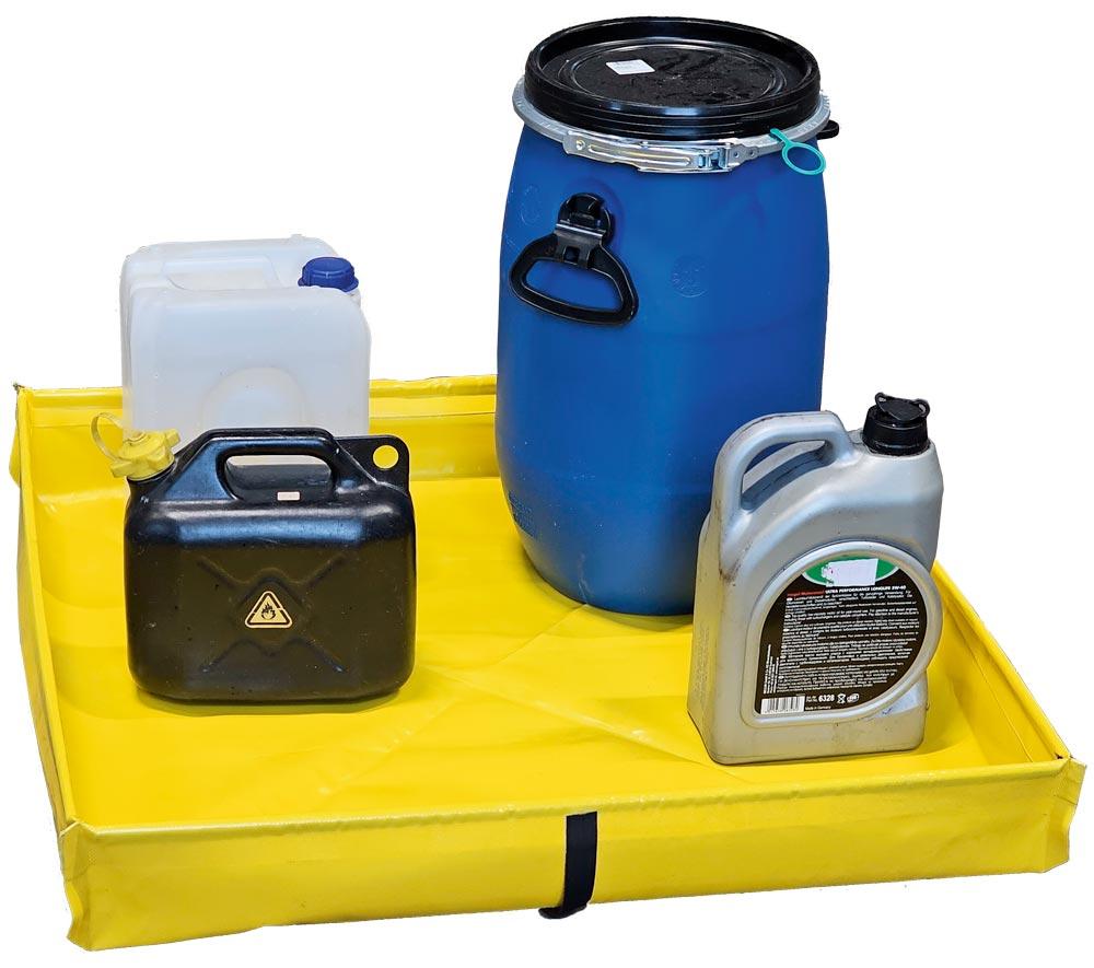 Produktinformationen "Flexible Auffangwanne, für Paletten BxTxH 600x800x120 mm, Aufnahme 57 Liter, Gewicht 1 kg"