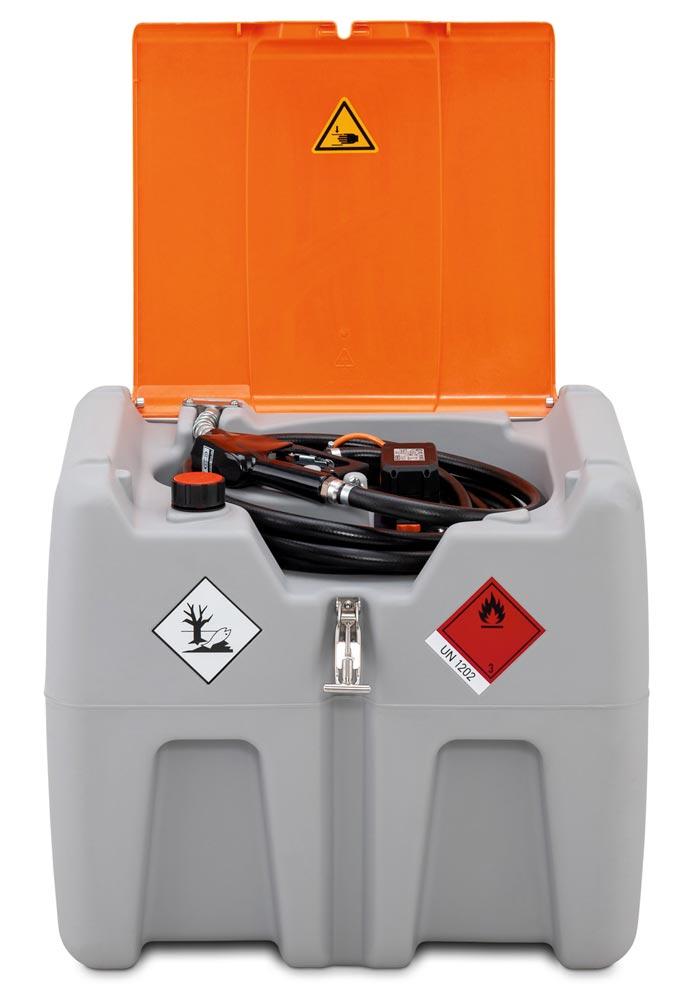 Produktinformationen "Mobile Dieseltankstation, Vol. 210 l, Klappdeckel, Elektropumpe 18 V, 30 l/min, CAS Akku 18 V, 4 Ah und Ladegerät, BxTxH 785x595x685 mm"