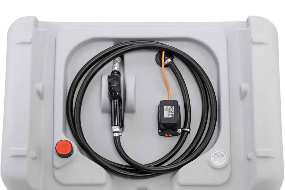 Mobile Dieseltankstation, Vol. 440 l, Klappdeckel, Elektropumpe 18 V, 30 l/min, CAS Akku 18 V, 4 Ah und Ladegerät, BxTxH 1180x800x710 mm