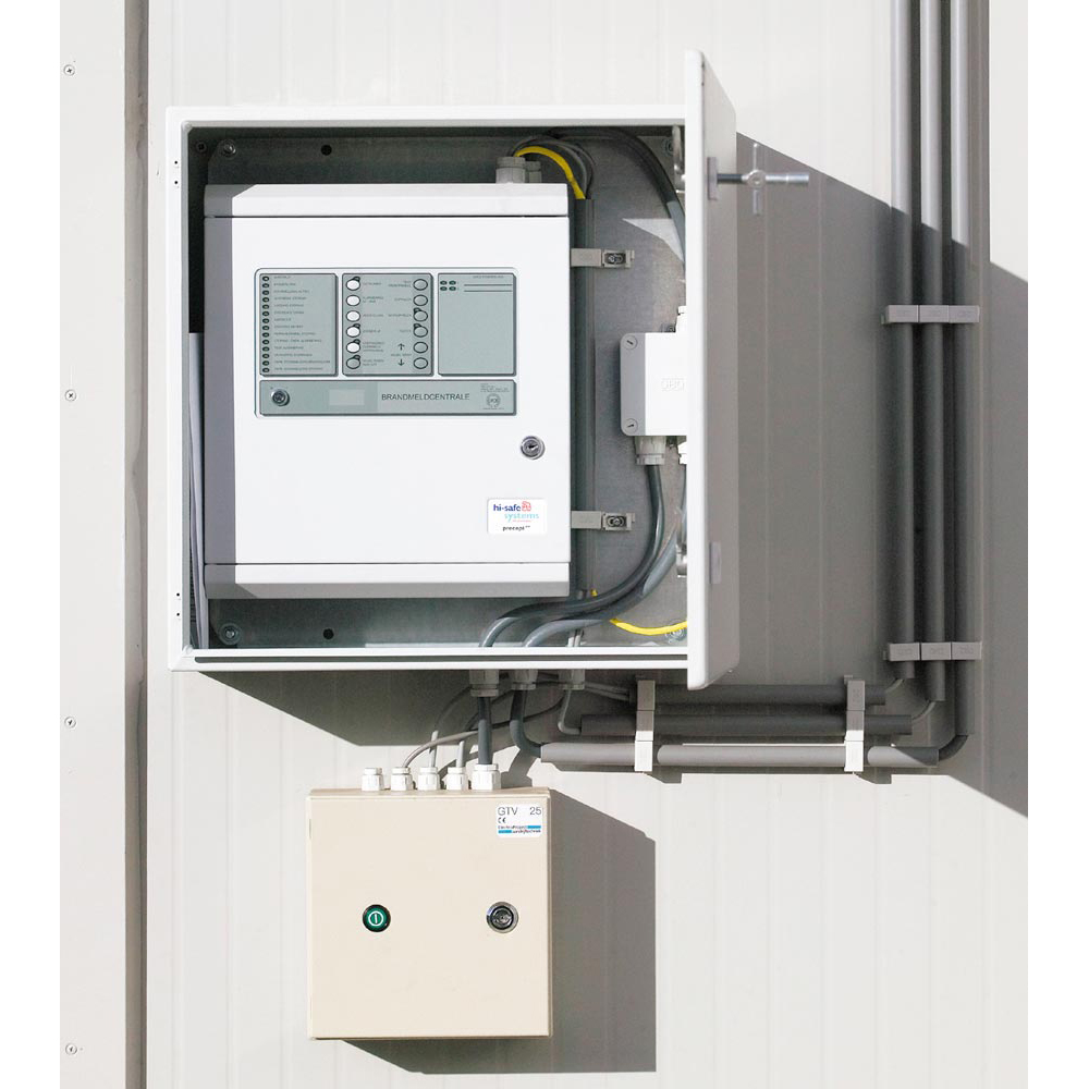 Im Brandfall: ∙ Automatische Türschließung durch Auslöseelektronik mittels Rauch-/Temperaturdifferenzmelder ∙ Alle elektrischen Einbauten einschließlich Abluftventilator werden stromlos geschaltet ∙ Türen, Türspalten, Zu- und Abluftöffnungen werden durch Temperatureinwirkung hermetisch geschlossenStandardausstattung der Brandschutzcontainer: