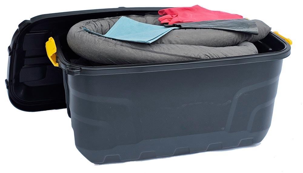 Notfall-Set, BxTxH 800x380x430 mm, Aufn. 100 l, 50 Tücher, 4 Saugschläuche, 2 Kissen, 15 Wischtücher, Handschuhe, Ents.säcke, alle Flüssigk., grau